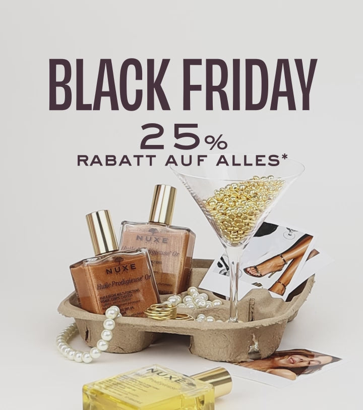 *Cyber Monday: 25 % Rabatt auf das gesamte Sortiment, ausgenommen Weihnachtsboxen, Adventskalender, Online-Exklusivprodukte und Reisesets und Verwöhn-Duo Für Hände und Lippen gratis ab einem Einkaufswert von 30€ am 1. Dezember 2025. Das Angebot ist nicht mit anderen laufenden NUXE-Promotionen kombinierbar und gilt nur in Deutschland.