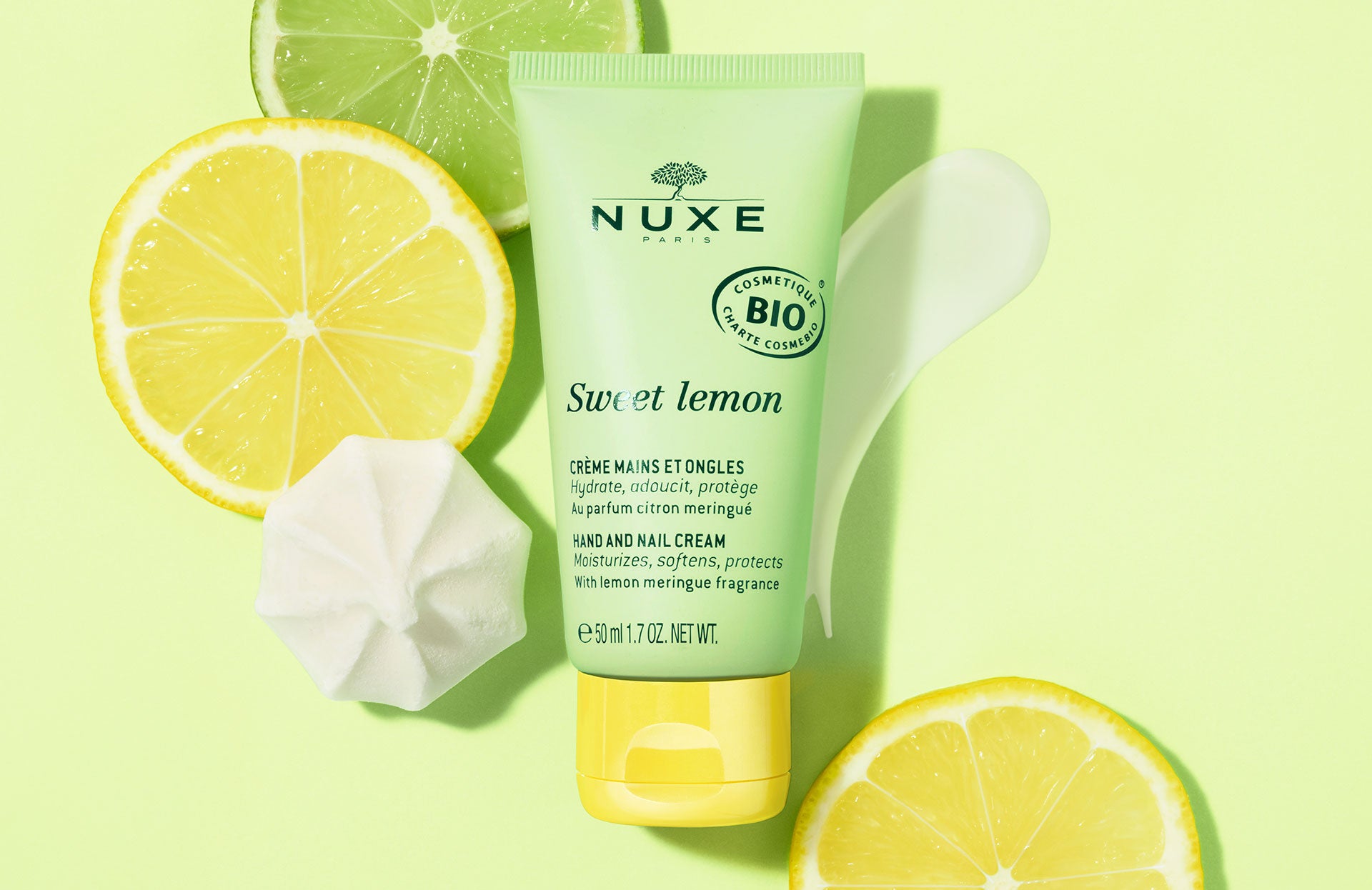 Verleihen Sie Ihrer Pflegeroutine mit diesen veganen ⁽¹⁾, biologisch zertifizierten Produkten für Lippen und Hände mit einem genussvollen Zitronen-Meringue-Duft das gewisse Etwas. Diese beiden Körperzonen sind insbesondere Umwelteinflüssen ausgesetzt, weshalb sie schnell austrocknen. Das Sweet Lemon-Pflegetrio basiert auf speziell für die Feuchtigkeitsversorgung und Pflege von Händen und Lippen entwickelte Formeln und garantiert himmlischen Pflegegenuss.