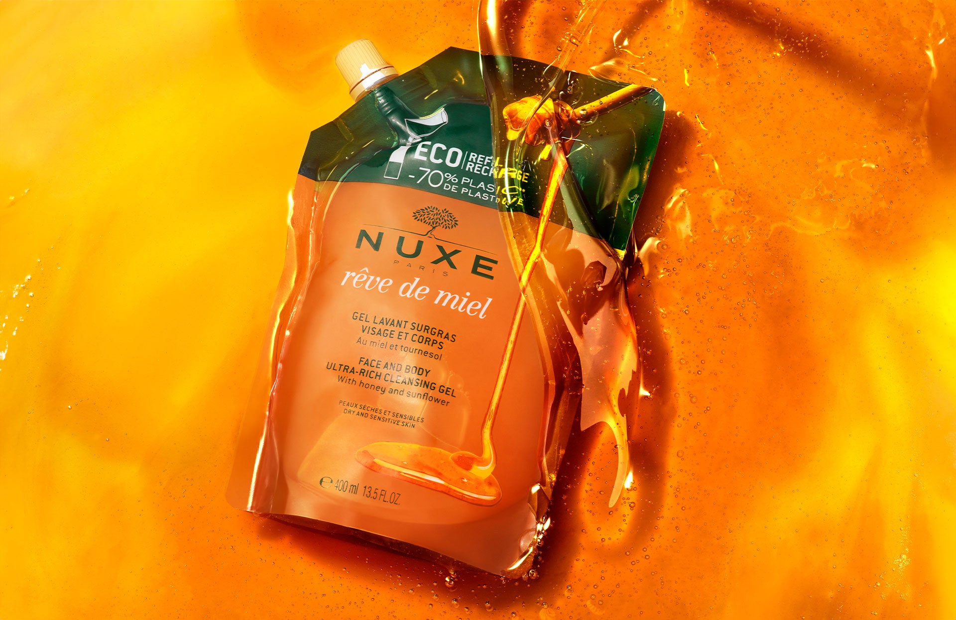 Honig ist ein komplexes, wunderbares Produkt und das Ergebnis der Alchimie aus dem Nektar des von den Bienen aus den Blüten gesammelten Pollens und einer komplexen Transformation im Bienenstock. Mit Rêve de Miel ist der NUXE-Recherche ein beruhigendes Schönheitspflegeritual für Gesicht und Körper gelungen, das die zahlreichen Wohltaten dieses leistungsstarken Wirkstoffes mit der Wirkung von hochwertigen Pflanzenölen kombiniert.