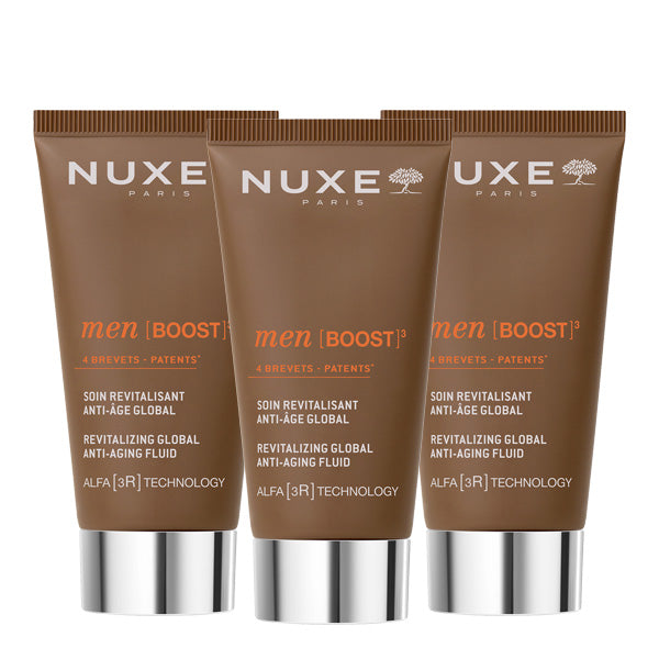 NUXE Men [BOOST]³, die professionelle Pflegeserie, die eine Kombination bietet aus Wirkkraft und Sinnlichkeit, um das volle Potenzial Ihrer Haut zum Vorschein zu bringen. Angereichert mit einem patentierten Eschenrinden-Oleo-Extrakt. Zudem sorgt die ALFA [3R]-TECHNOLOGIE⁽¹⁾, die wirksamer ist als Retinol⁽²⁾ für revitalisierte, regenerierte und rundum erneuerte Haut.