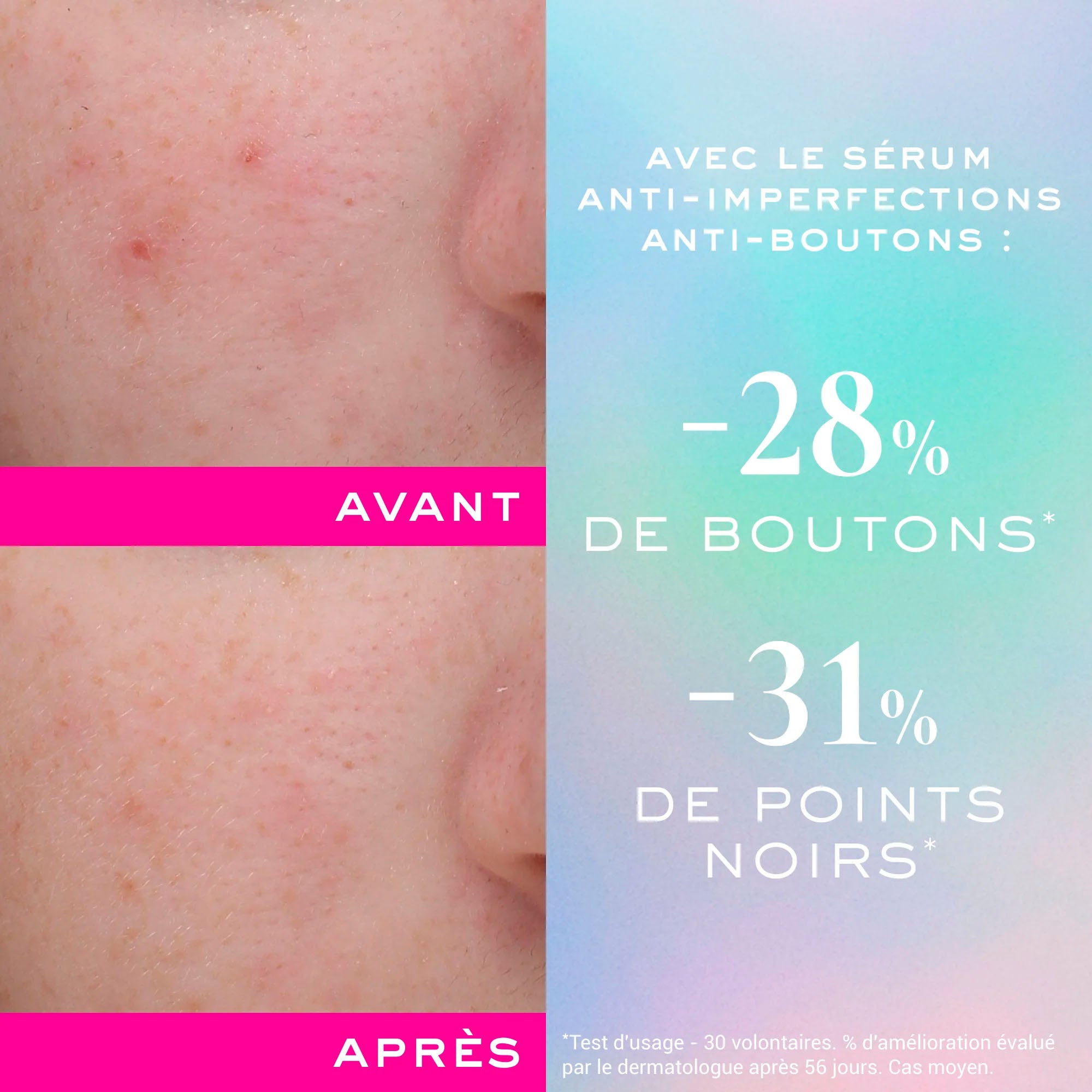 Nach 2 Monaten die Hautqualität wird sichtbar optimiert: -28 % Pickel*** und -31 % Mitesser***.